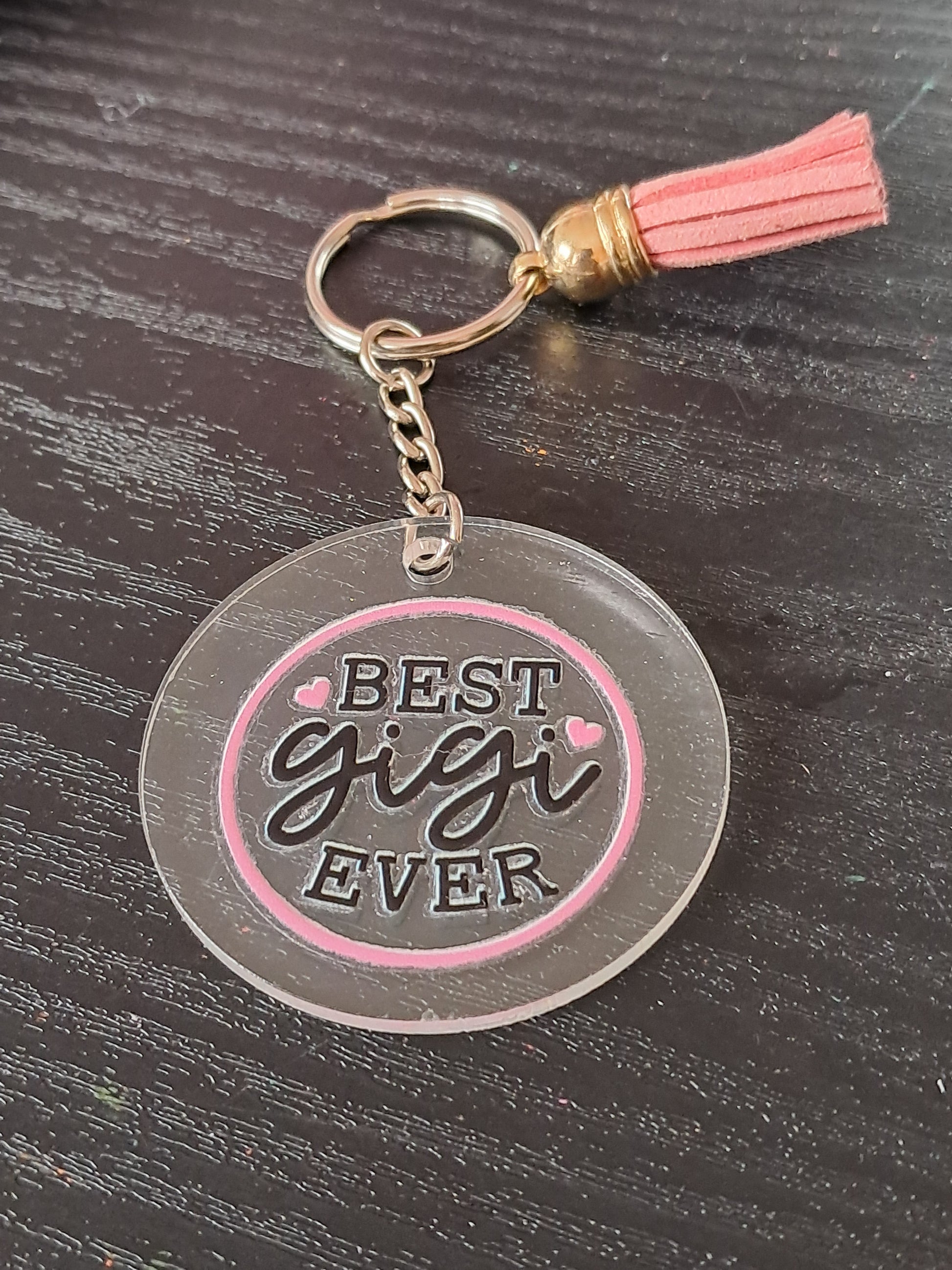 This beautiful keyring features a heartfelt message of "Best Gigi ever." It serves as a daily reminder of someone special. Made with high-quality materials and a modern design, it is a perfect gift for any occasion. Show your appreciation for your Gigi with this elegant and meaningful keyring.