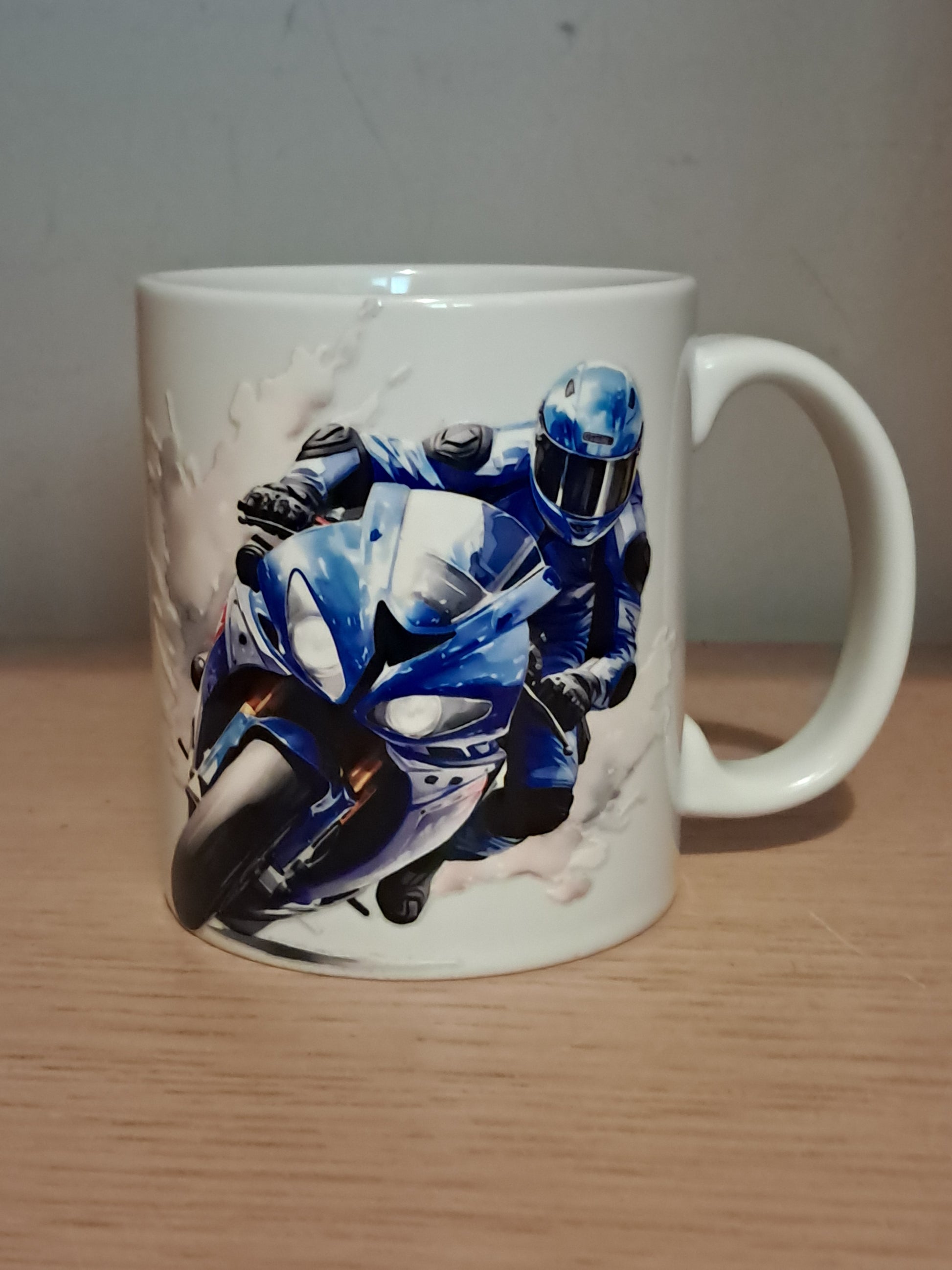 Expertly crafted for the avid motedbike enthusiast, our blue mug is the perfect addition to your collection. Personalize the other side with a name for a truly unique touch. Made with quality materials, this mug is both durable and stylish, making it a must-have for any coffee or tea lover.